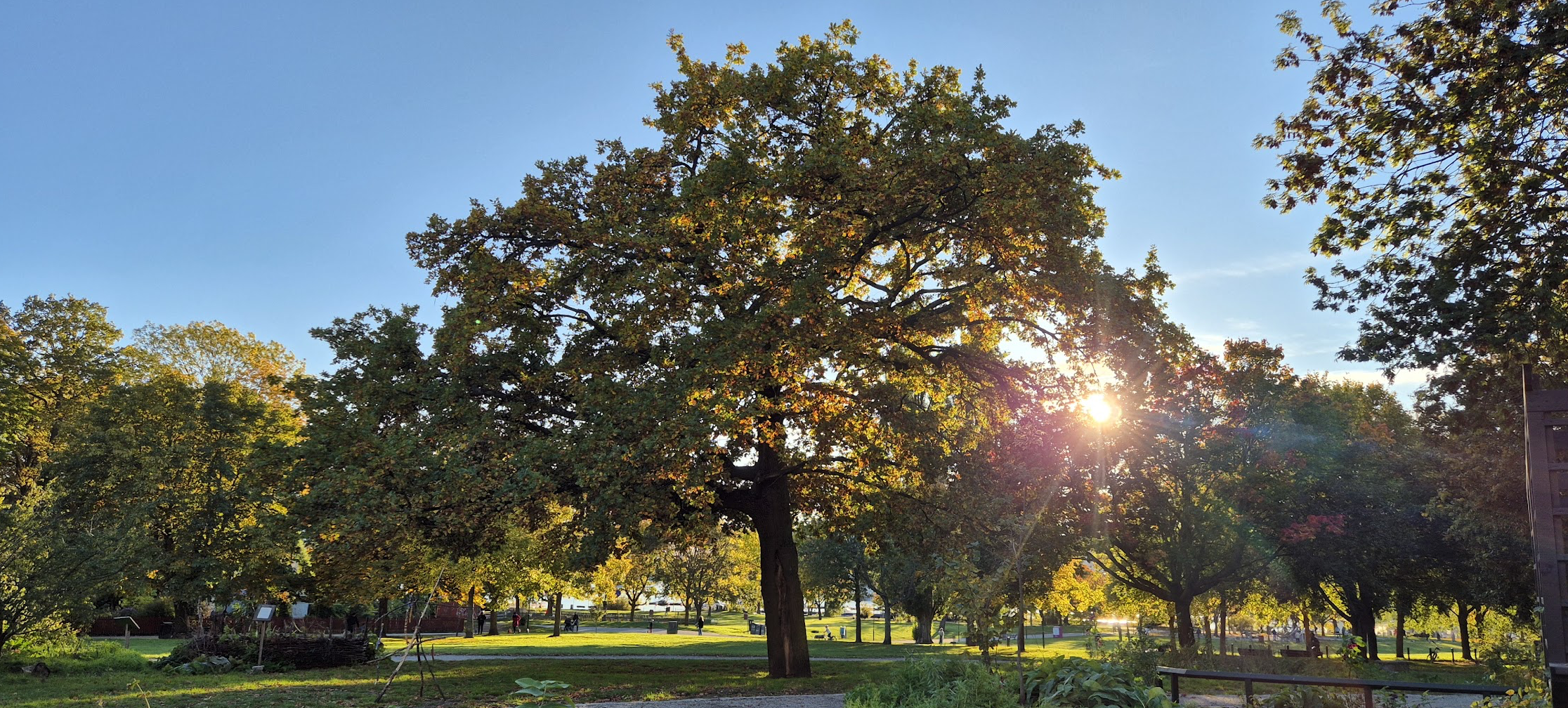I Tantolunden, vid kanten av det som i dag är Drakenbergsparken, står ett par ekar som vi döpt till Mrs Freddie och Pliny. De ser självklara ut där de breder ut sina kronor över odlingsytan, som om marken alltid har varit park.