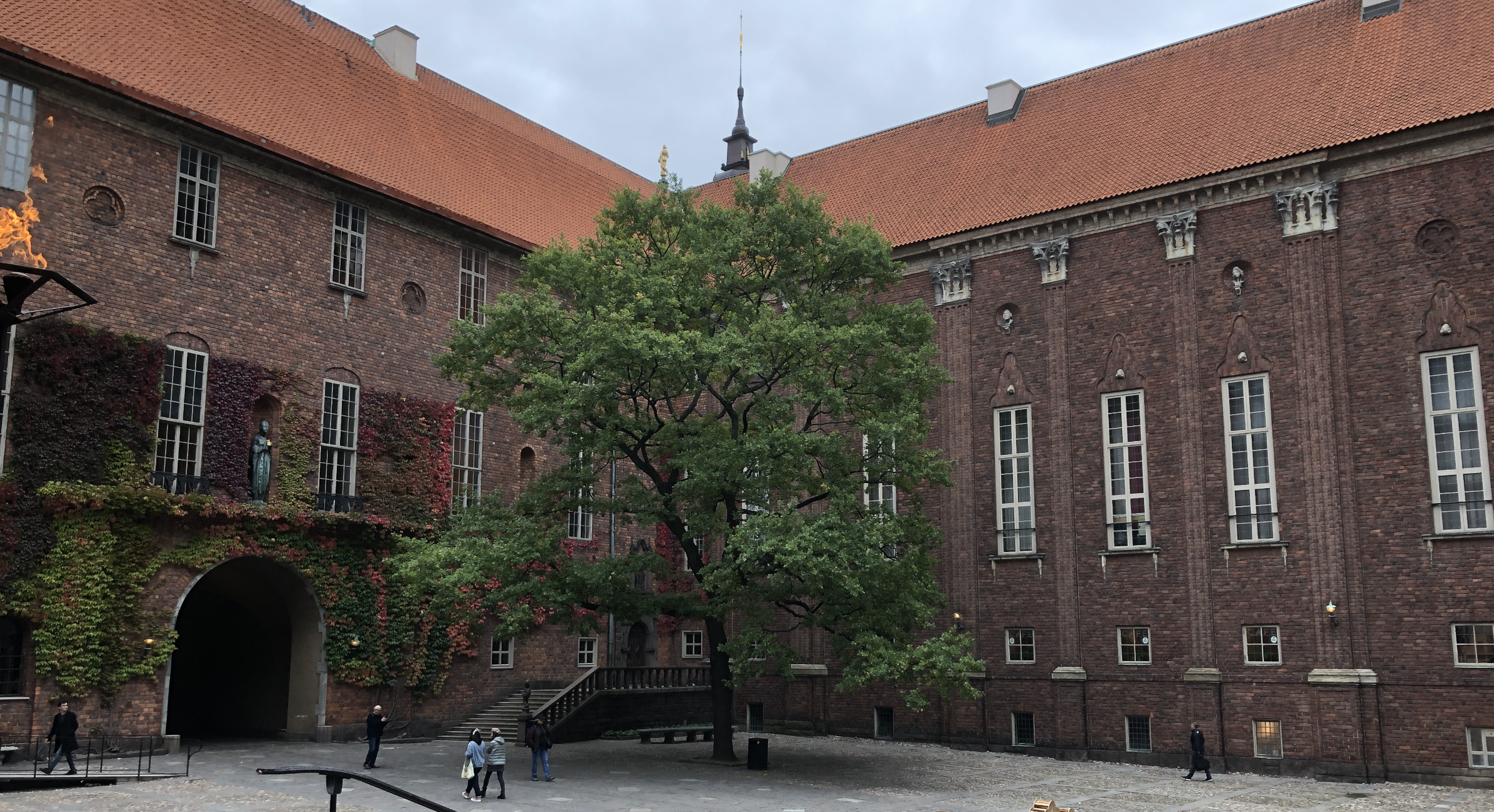 På Borgargården i Stockholms stadshus står idag ett vårdträd. Hon ser självklar ut där hon breder ut sin krona framför drätseltrappan. Som om hon alltid har stått där.