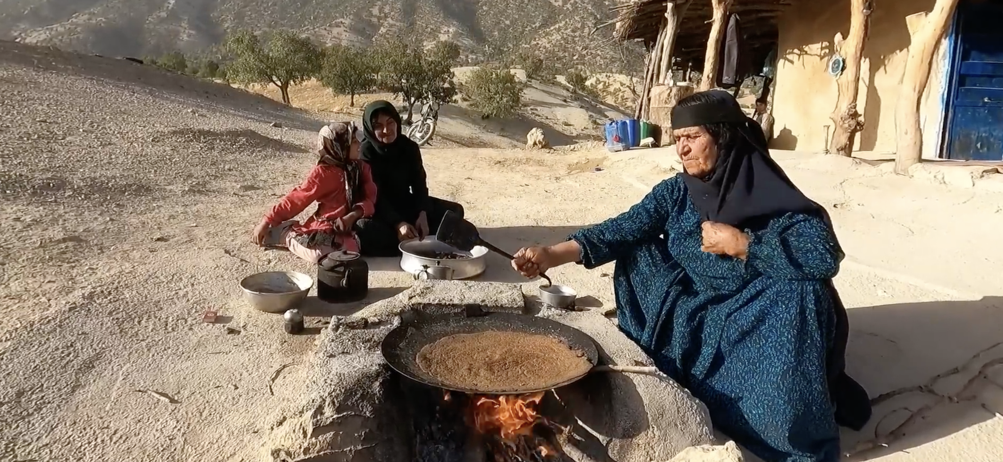 Äldre kvinna gör ekollonbröd, Iran