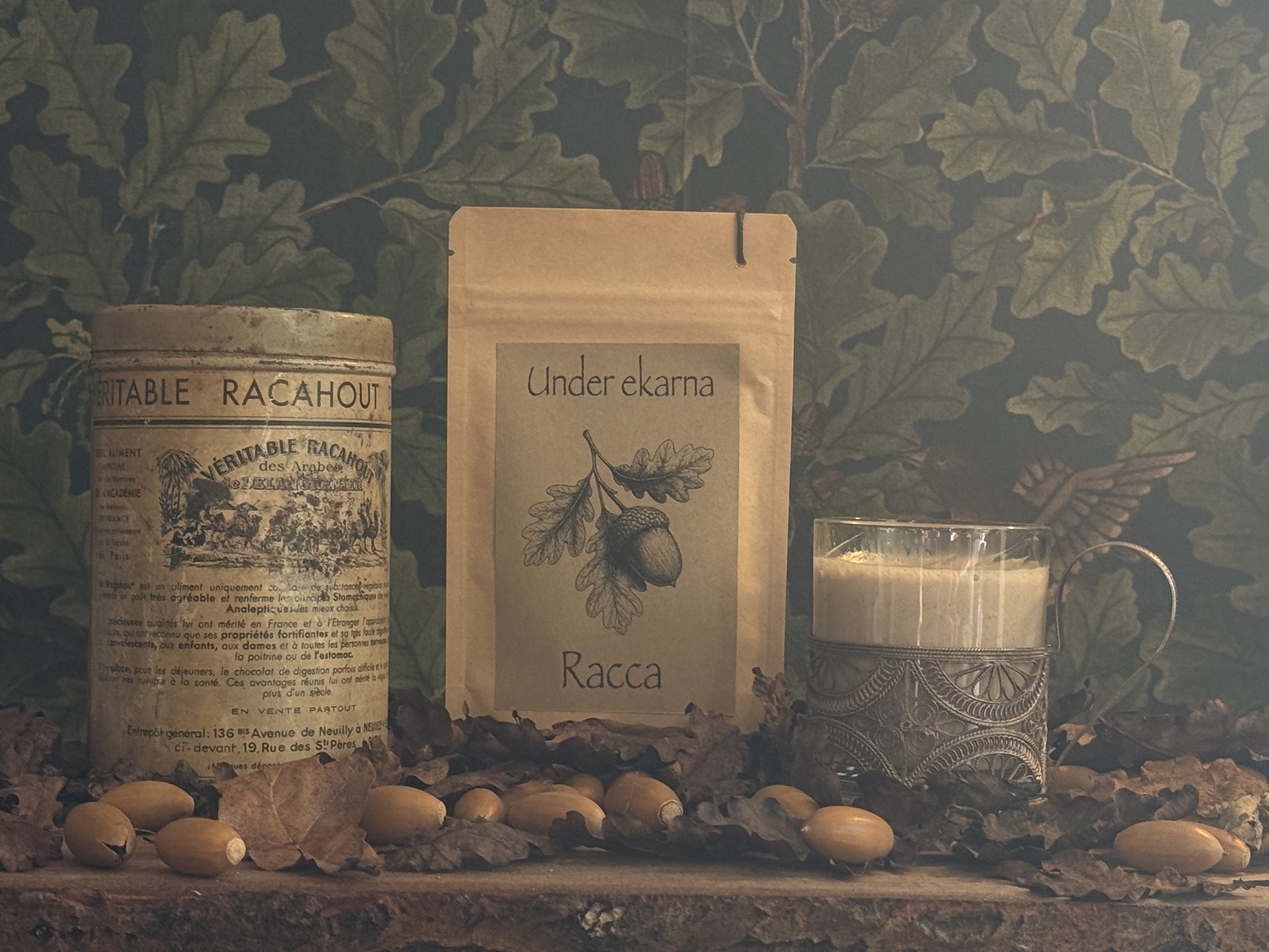 Racca is our own acorn-based drink, inspired by historical folk beverages in which roasted acorns were ground into a powder and cooked into a warm, smooth drink. In older sources, similar drinks are described – sometimes called racahoutor palamoud – in parts of North Africa, the Levant, and around the eastern Mediterranean. With Racca, we allow acorns to take their place again, as a nutty, gentle warm drink rooted in a nearly forgotten food culture.