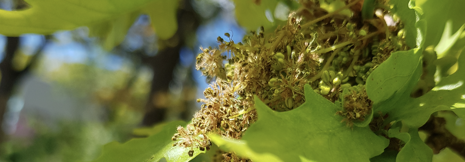 Ett mastår tar sin början redan i blomningen. Eken är sambyggare och har både hanblommor och honblommor på samma träd. Hanblommorna sitter i hängen och sprider sitt pollen med vinden, medan honblommorna sitter mer undanskymda i bladvecken och tar emot det som förs genom luften.